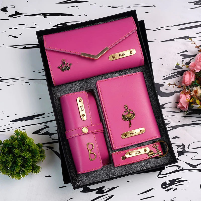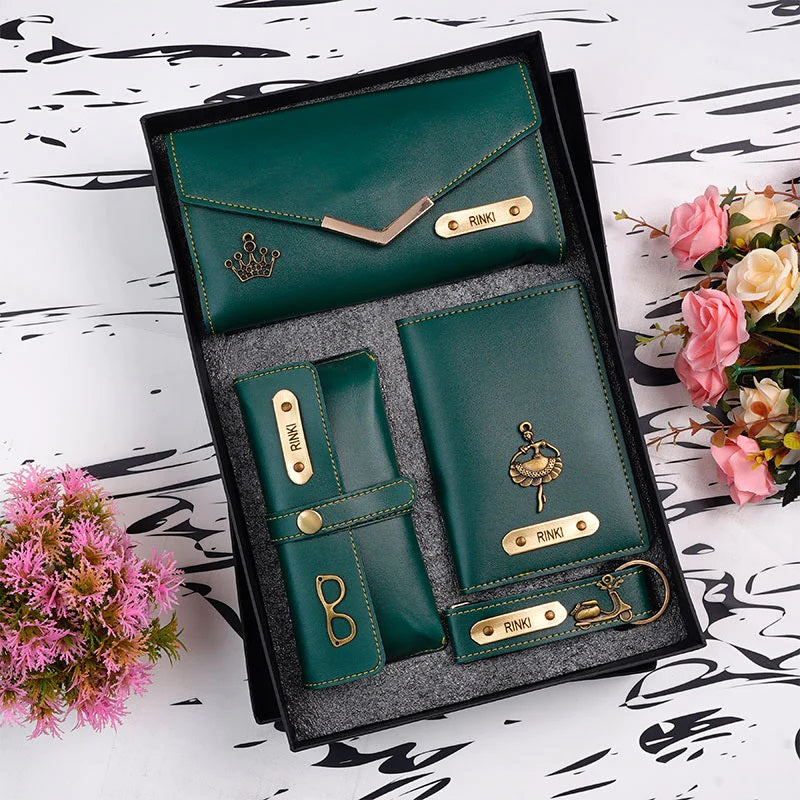 Elevate your everyday style with this playful Women’s 4-piece Combo! The set features a chic leather clutch, a sleek passport cover, a handy keychain, and a stylish sunglasses cover, all customizable to reflect your unique vibe. Whether you are stepping out or looking for the perfect gift, this combo adds a coordinated touch of fun and flair to your accessories. Stay organized, stay stylish, and let your essentials speak for you!